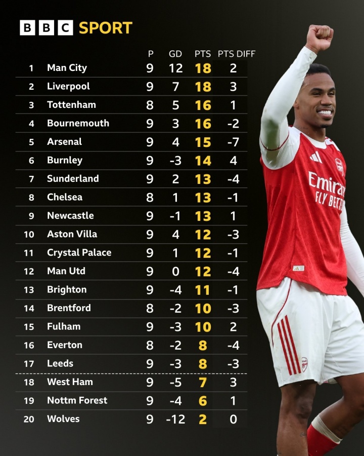 10月27日讯 英超第9轮战罢后,阿森纳以4分上风领跑,BBC昨日赛后统计了在仅缱绻教导战进球的情况下的英超积分榜,阿森纳将少掉7分掉至第5。