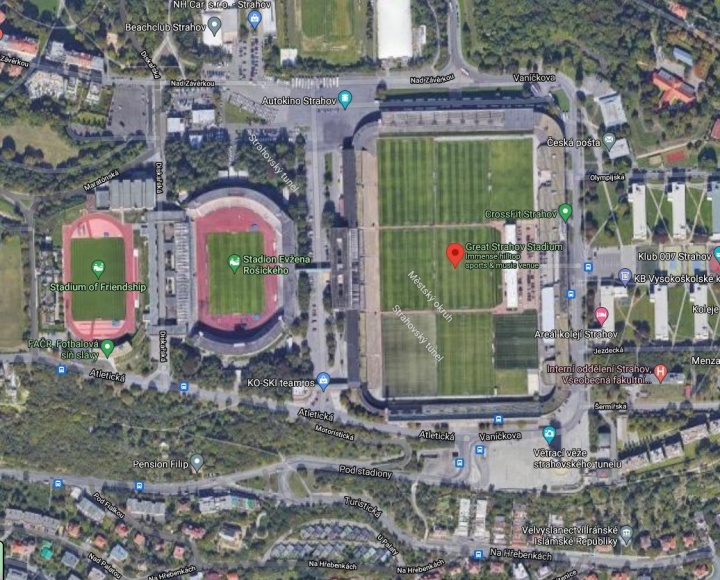 捷克斯特拉霍夫携带场,始建于1926年,长度和宽度齐是圭臬足球场的三倍,不错容纳25万东谈主。现在该携带场是布拉格斯巴达的磨真金不怕火中心,还不错举办演唱会。