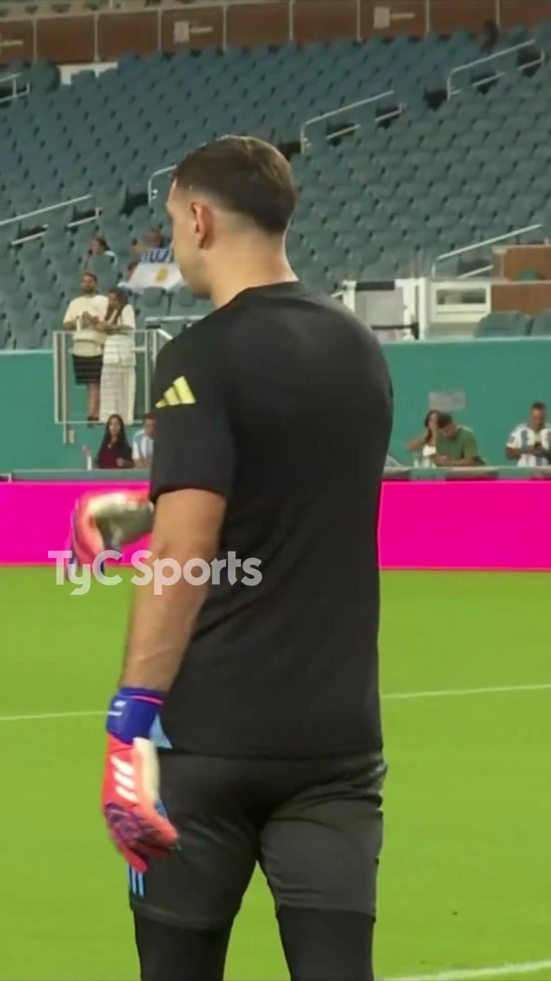 阿根廷队今天在迈阿密与委内瑞拉队热身,赛前,阿根廷队门将大马丁看到了一位身穿他的家乡球队阿尔多西维球衣的球迷,并商定营救测验服。随后,大马丁让责任主说念主员将我方的测验服营救给这位球迷。