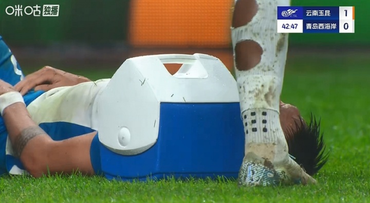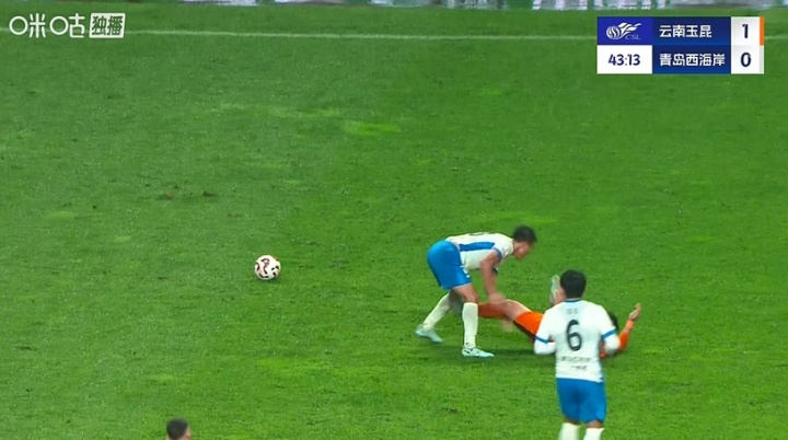 比赛第43分钟,宋浩宇防备时被倒地的罗竞踢到裆部,随后队医进场治愈。