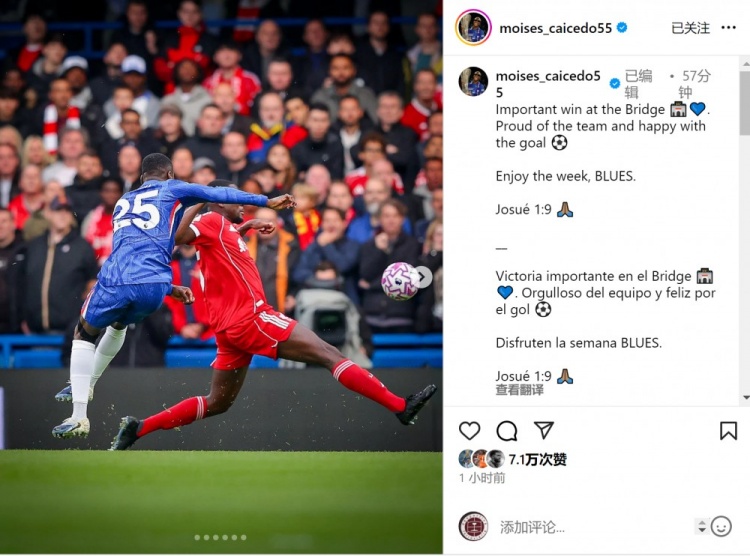 凯塞多社媒晒出比赛相片,并写说念:“在斯坦福桥获取焦躁奏凯,为球队感到自尊,为进球感到繁荣。享受这个周末吧,蓝军球迷们。”
