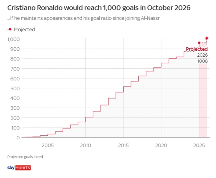 天外体育最近的预测清楚,字据C罗当今的进球后果,他展望将在2026年10月成为历史上第一位进球数达到1000的球员。