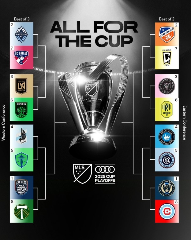 西区:温哥华白浪(2)vs达拉斯FC(7)、洛杉矶FC(3)vs奥斯汀FC(6)