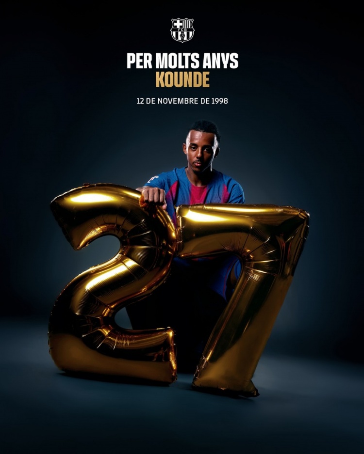 巴萨官方社媒晒出孔德的寿辰海报,配文:“寿辰惬心,孔德!”