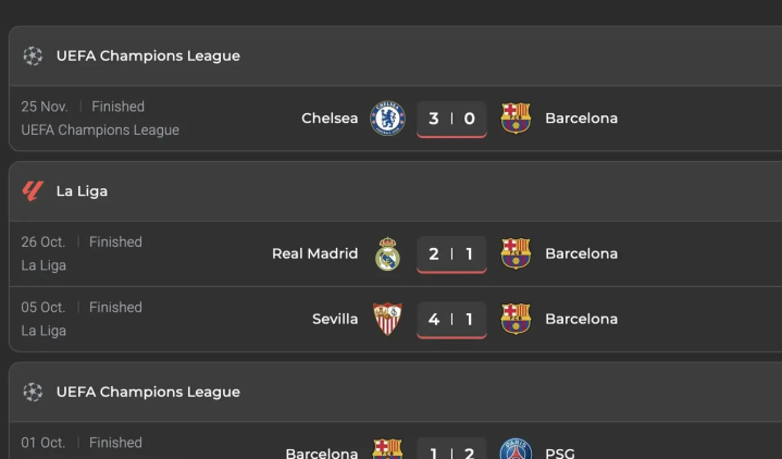 浅显的事实是,这套体系正在耗尽球员的元气心灵。强度太大,合手续时刻太长。收尾就是一个充满惨痛失利(0-3负切尔西,1-2负皇马,1-2负巴黎,1-4负塞维利亚)和信心完全下滑的赛季。球队看起来不像一个举座,更像是十一个油尽灯枯的东谈主在场上驱驰。