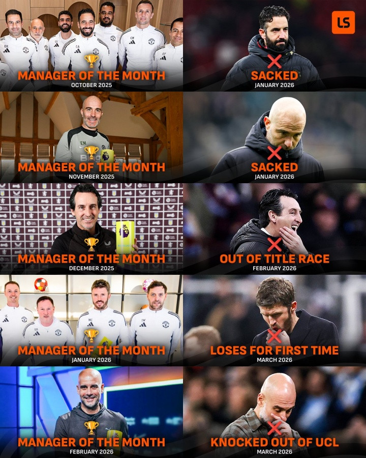 不过本赛季的几个拿到这个奖励主帅似乎都很糟糕,比如阿莫林、马雷斯卡下课,埃梅里、卡里克、瓜迪奥拉成绩下滑等。