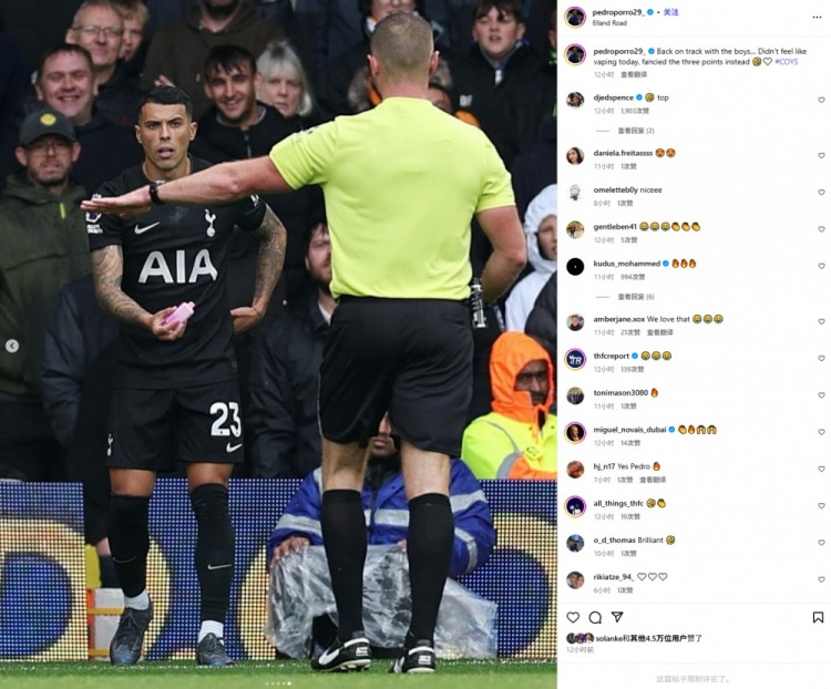 关联新闻:邮报:热刺边卫波罗被球迷的电子烟砸中,捡起来假装抽了两口