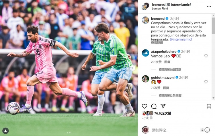 梅西社媒晒出比赛像片,并写谈:“咱们奋战到了决赛,但此次未能遂愿……咱们将汲取积极的素质,持续学习,以结束本赛季的主义。”
