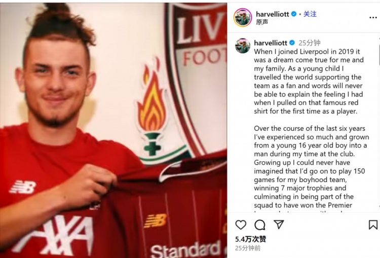 9月2日讯 埃利奥特也曾官宣加盟维拉,他也通过社媒发文牍别利物浦: